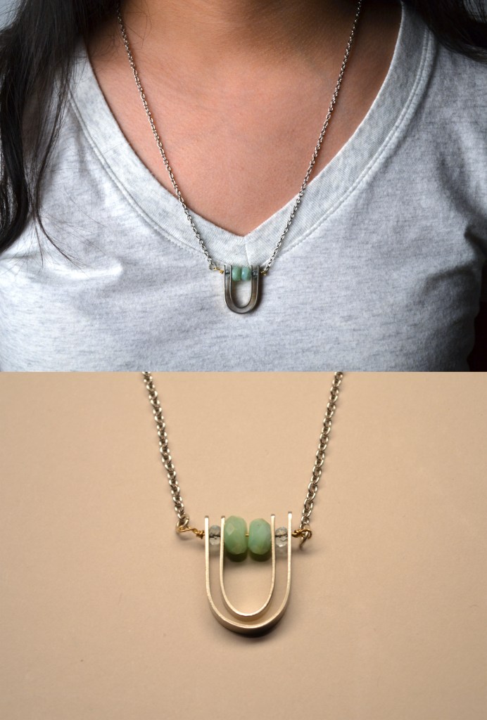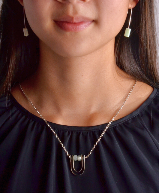Necklace and earrings. Silver, nickel, aquamarine stones