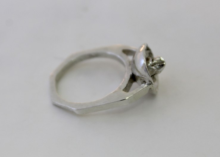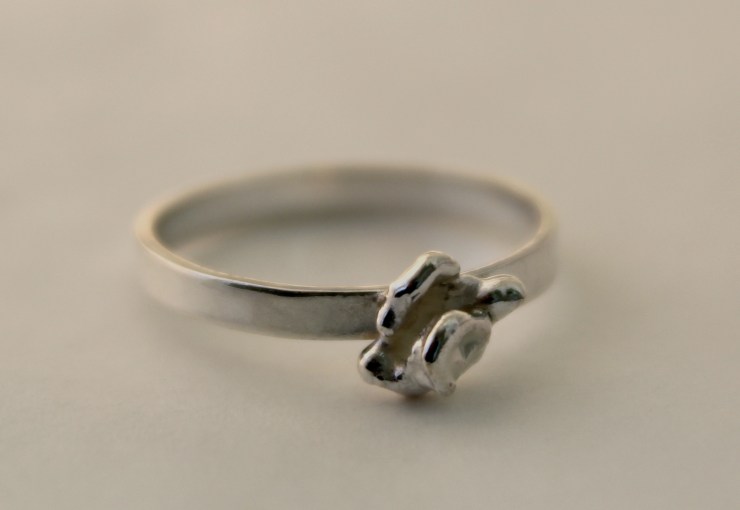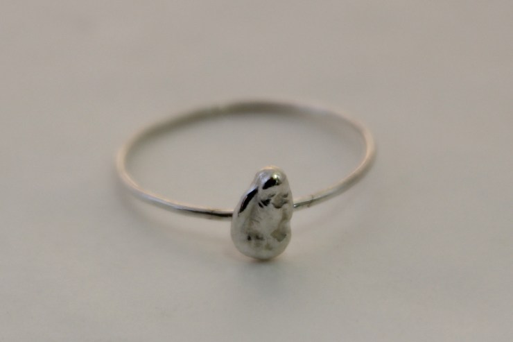 Silver rings made from lost-wax casting, soldering, water casting, and metal freezing.