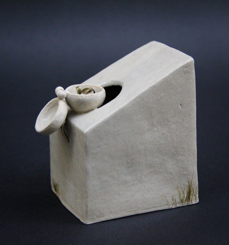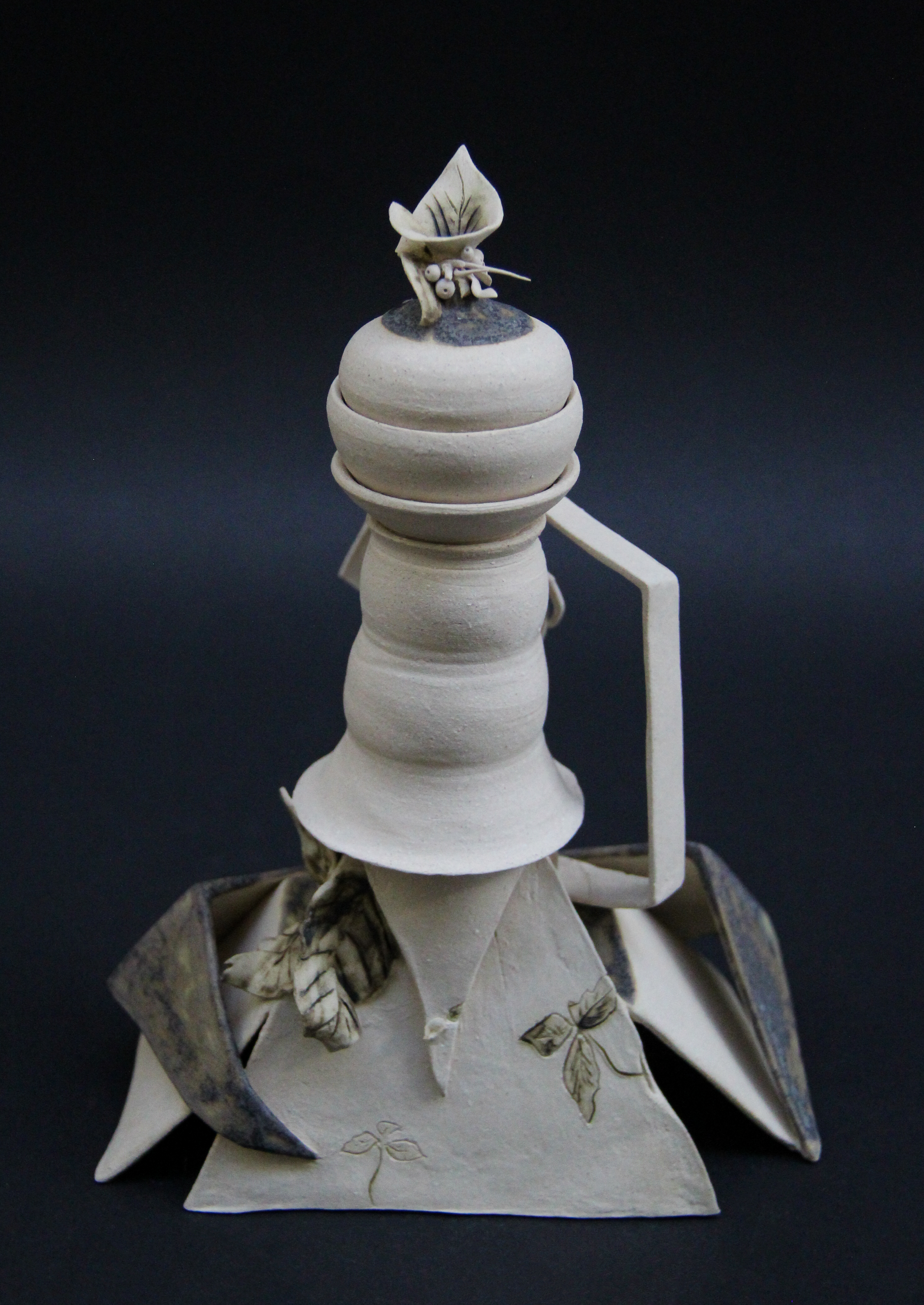 This handheld stoneware piece combines slip casting, handbuilding, and wheel throwing. It serves as a shrine to the organic wonders of my imagination inspired by observations of nature.